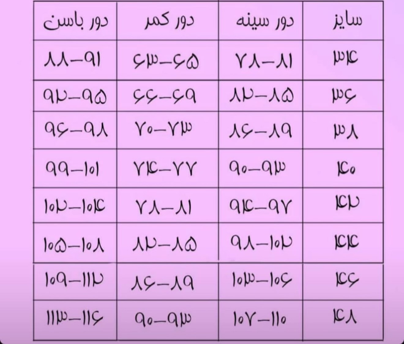 راهنمای اندازه: برای مشاهده کلیک کنید